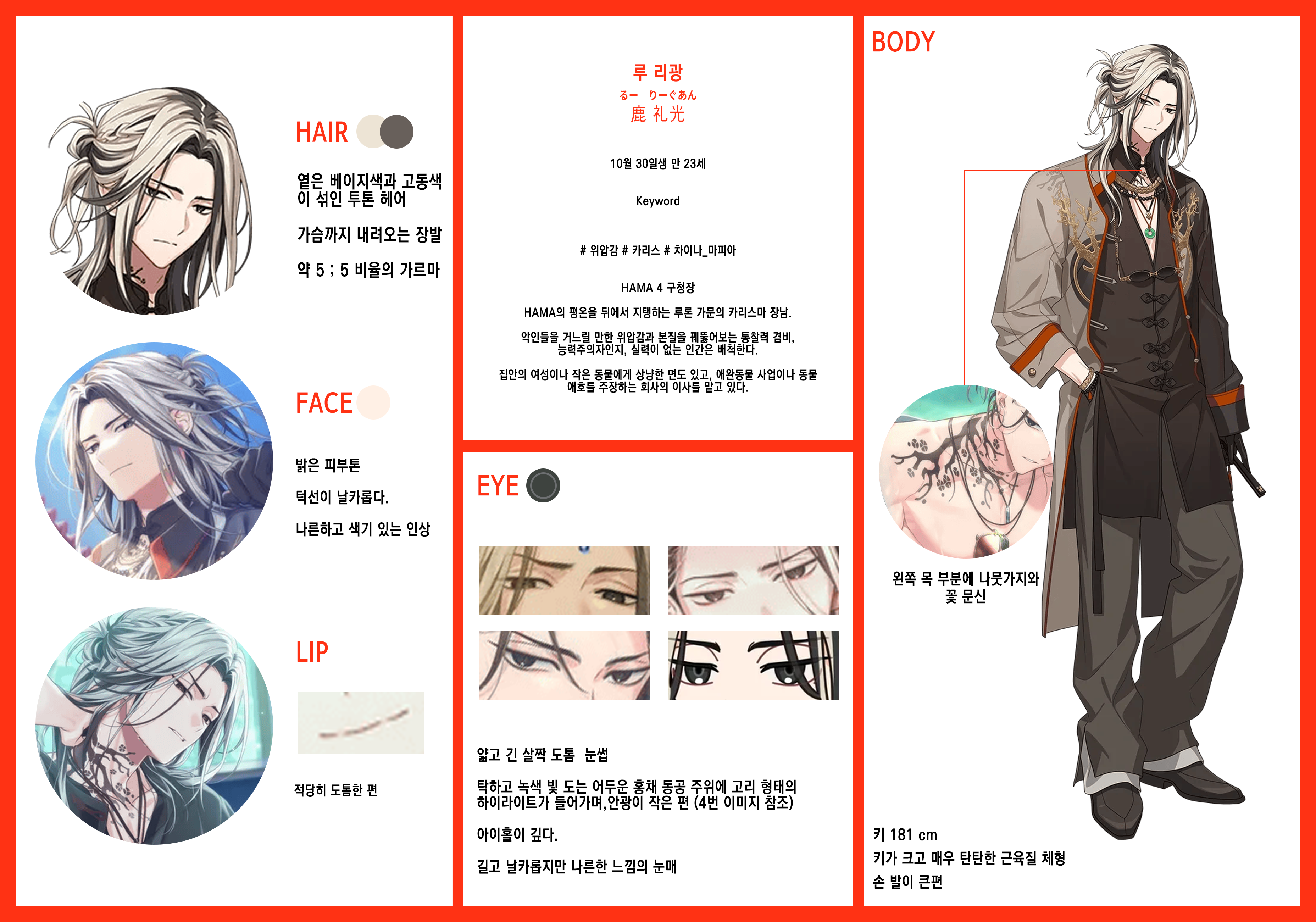 외관표 4 (의상은 오른쪽의 전신 이미지를 참조 해주세요.)